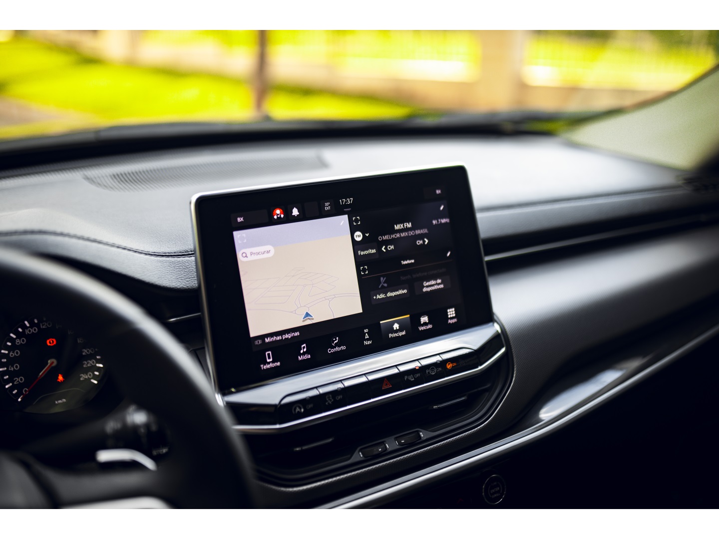 • Controle de som no volante